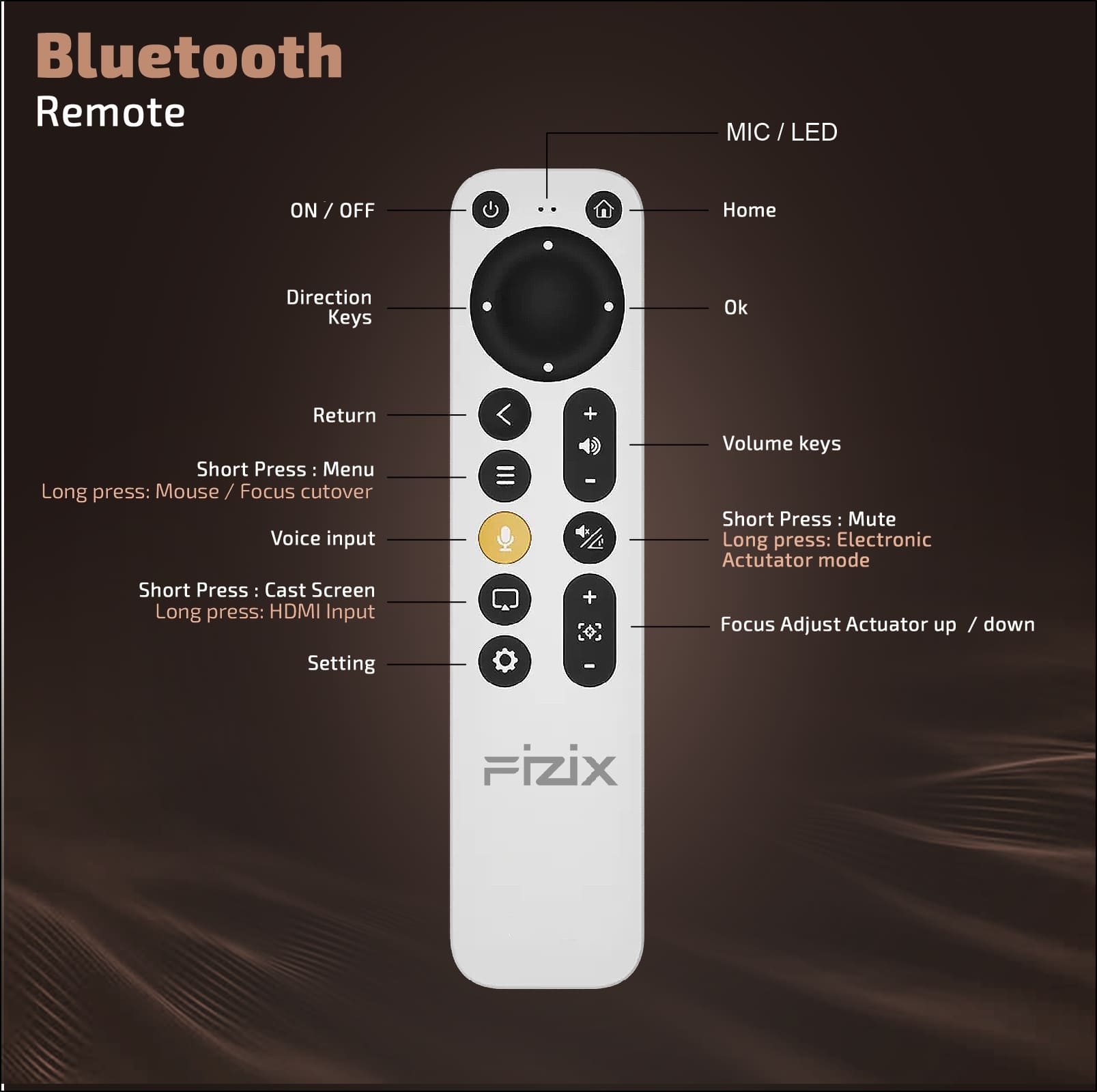 | Remote | Bluetooth Remote with Voice Assistant | Standard IR Remote |